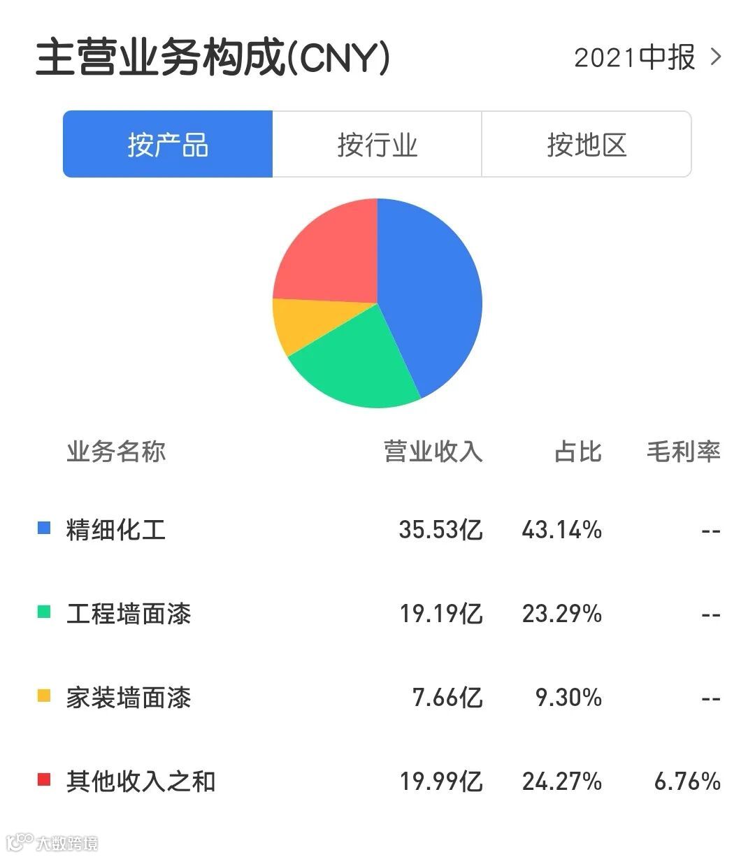 而从本次半年报中不难看出,工程和家装墙面漆是构成三棵树营收的两大主营业务,合计占总营收比重的32.59%。今年1-6月,工程墙面漆销量为44.18万吨,销售收入达19.19亿元,同比增长62.54%;家装墙面漆销量11.94万吨,销售收入达7.66亿元,同比增长153.14%。这种“降价冲量”的操作,尽管让业绩实现了高增长,但在价格方面却并不具备竞争优势。