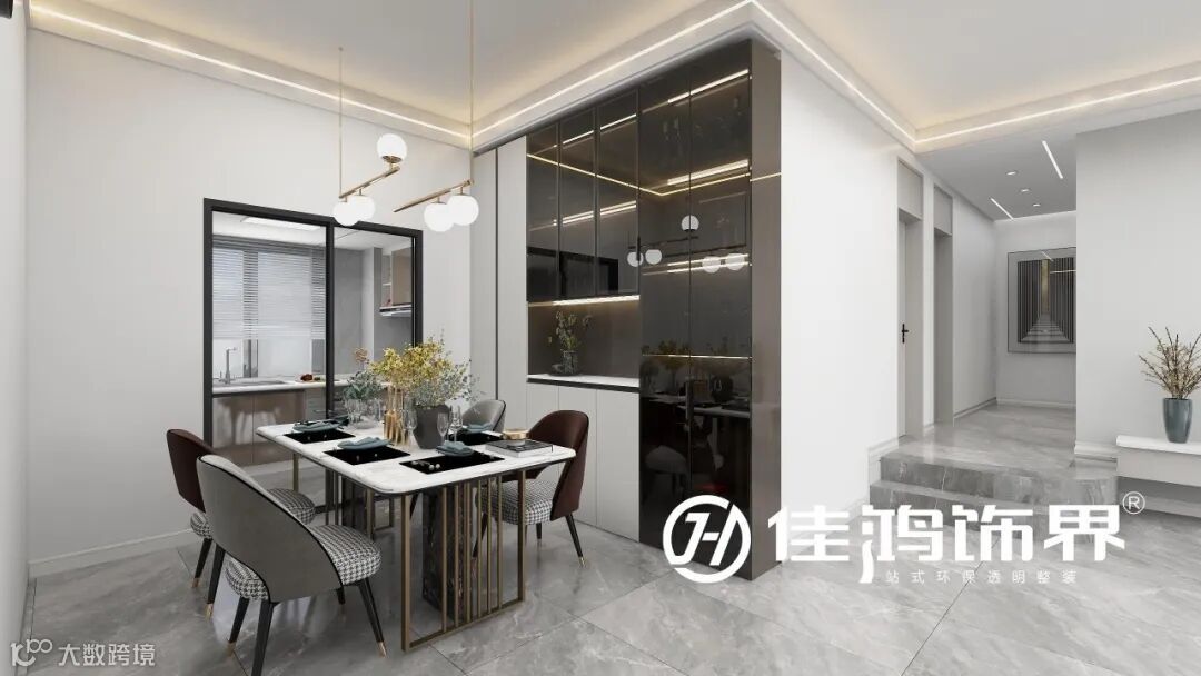 轻奢线性吊灯、组合挂画和几何饰品的装饰,又同时兼顾了艺术及品味,让人感受到家的温暖,真正体验舒适的生活氛围。