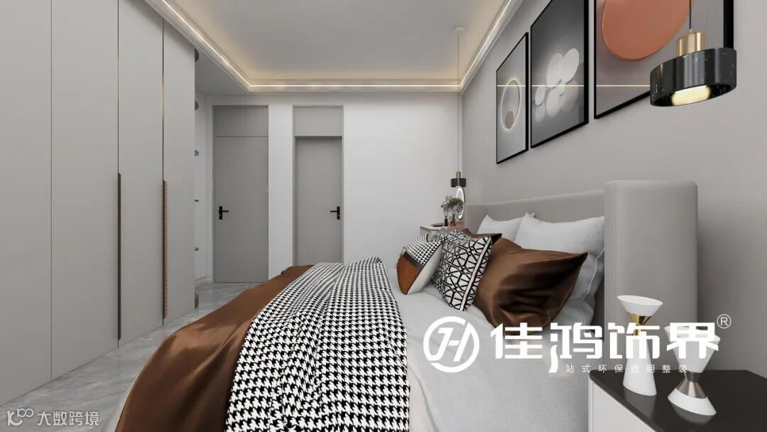 主卧整体营造一种自然优雅又富有气质的极简设计,高级棕色与灰白色调的融合,赋予空间无限的想象。
