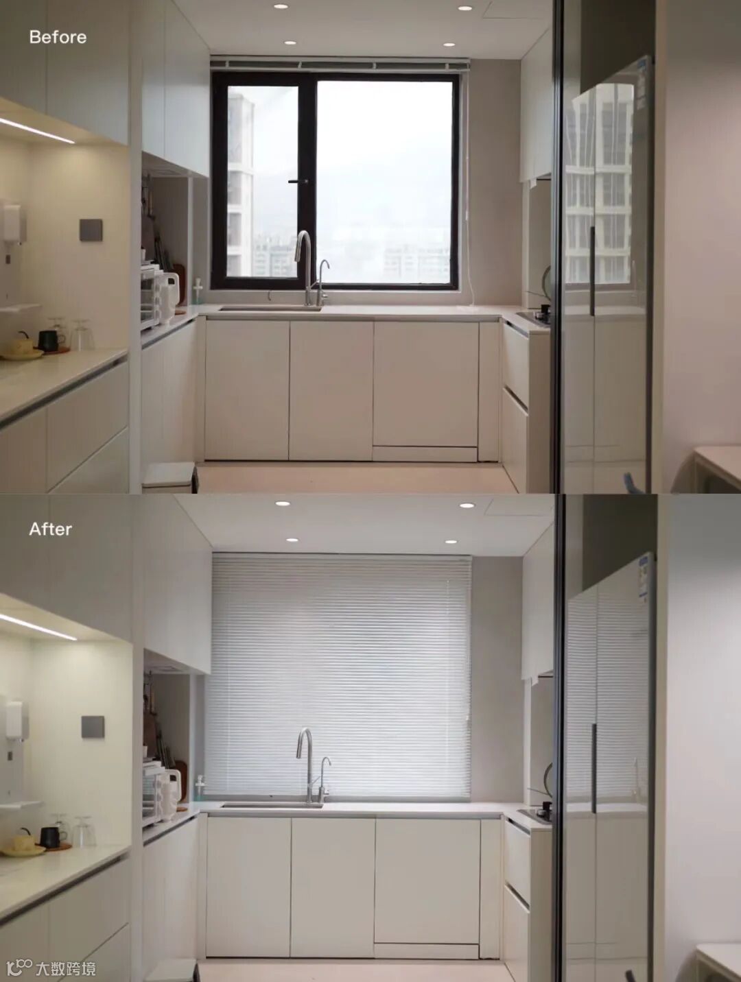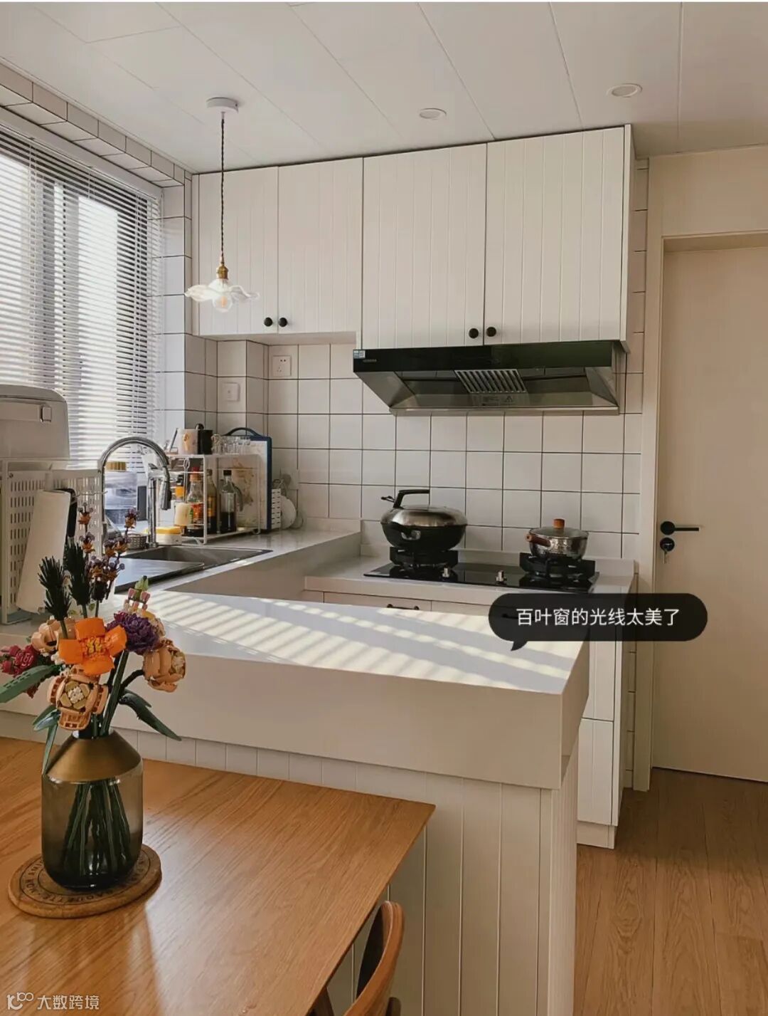 百叶窗可以说是INS、小x书上最火的设计之一,堪称氛围神器,多用在卧室、客餐厅、书房等,不过也有人装在厨房,烟火气中好像都多了一丝仙气儿。