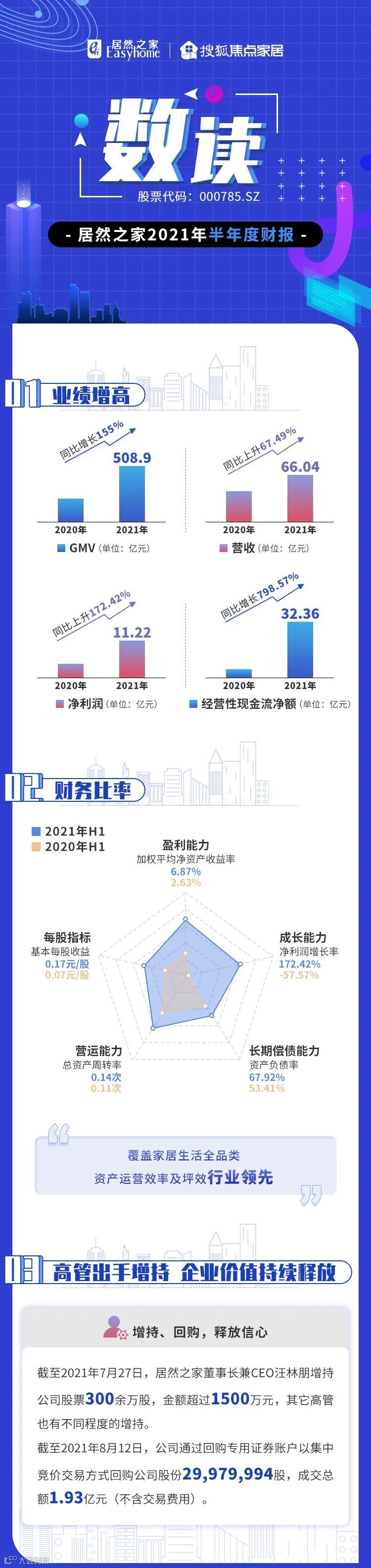 8月26日,居然之家(000785.SZ)发布2021年半年度报告。搜狐焦点家居从业绩增高、财务比率、高管出手增持 企业价值持续释放、深耕家居主业 加快连锁拓展、营业收入稳定 保持上涨趋势、引领数字化变革 领跑家居新零售等六大维度对财报进行深度解析。
