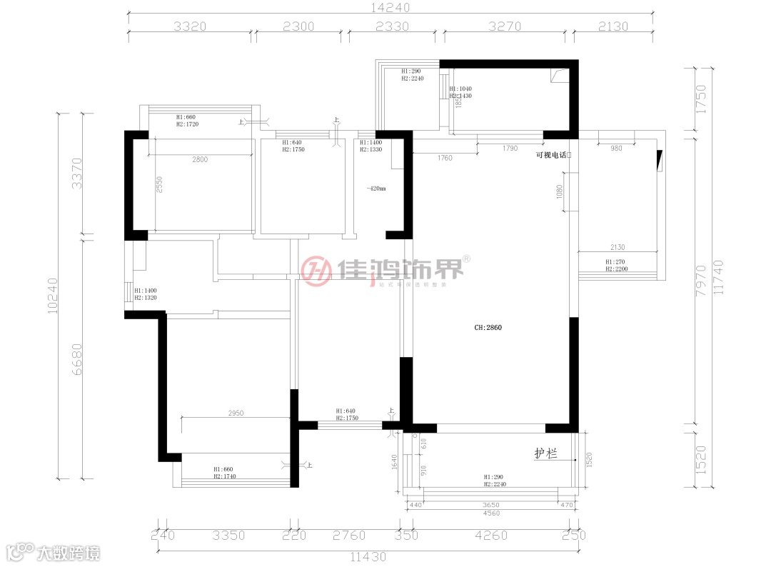 1. 拆除原小阳台墙体,扩大厨房操作空间;