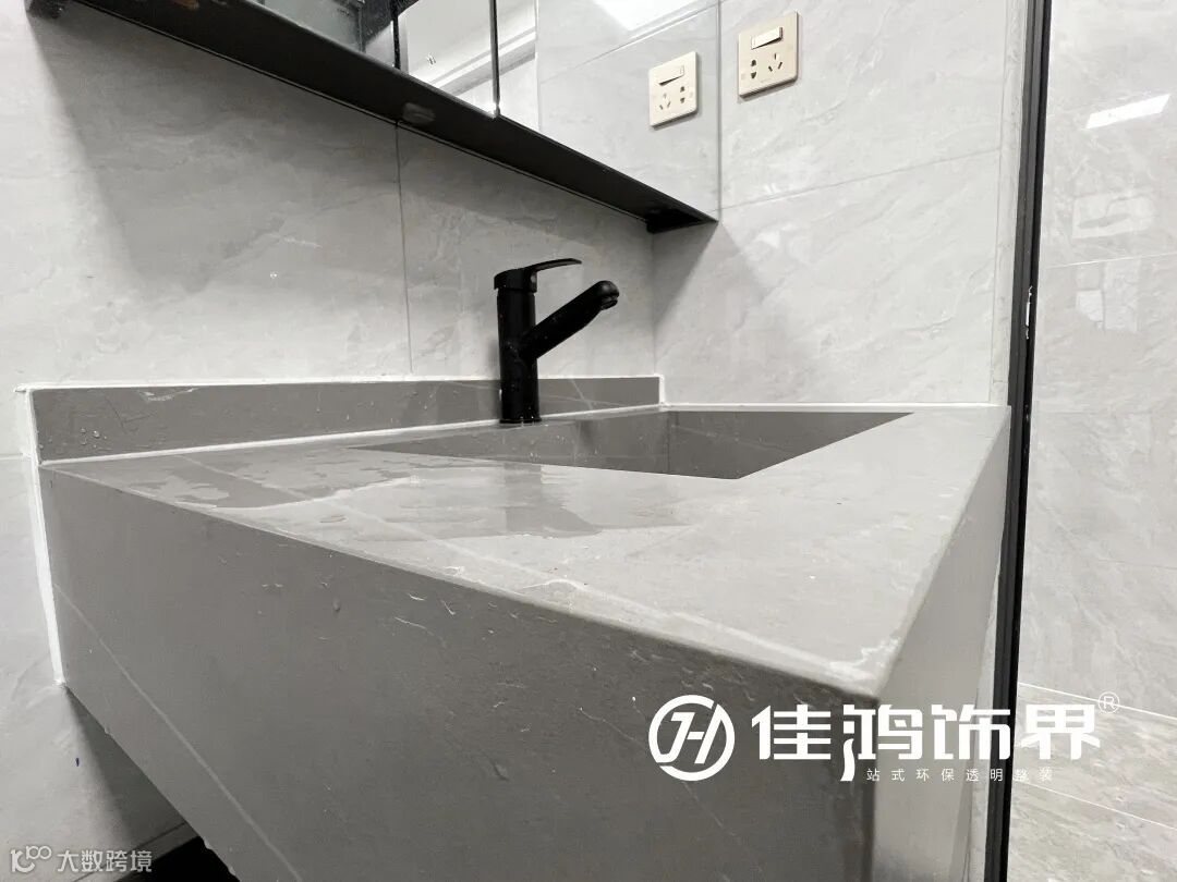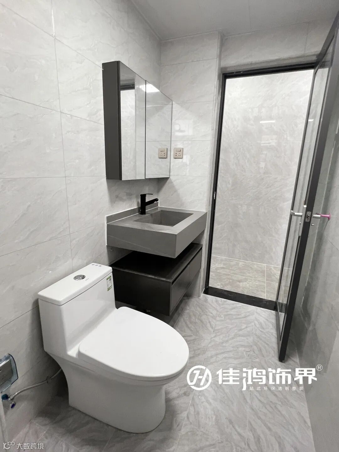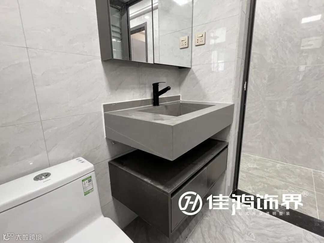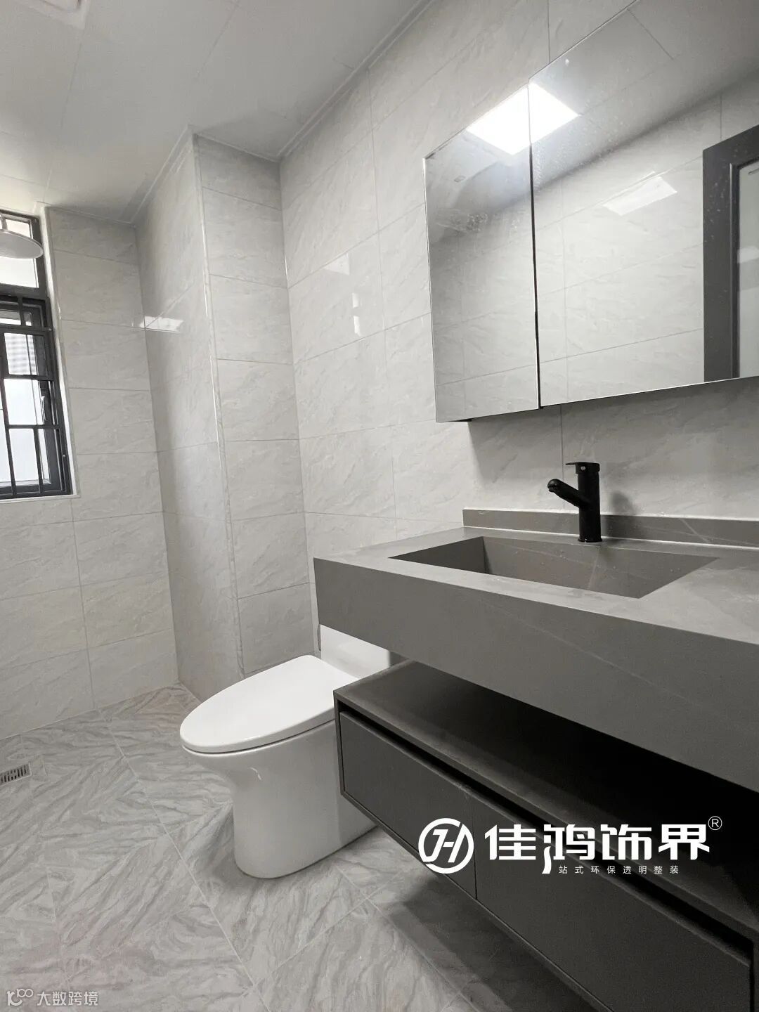 卫生间从外至内,依次为台盆区—马桶区—淋浴区。依然选用了高级的灰色,干净好打理,呼应整体家居格调。