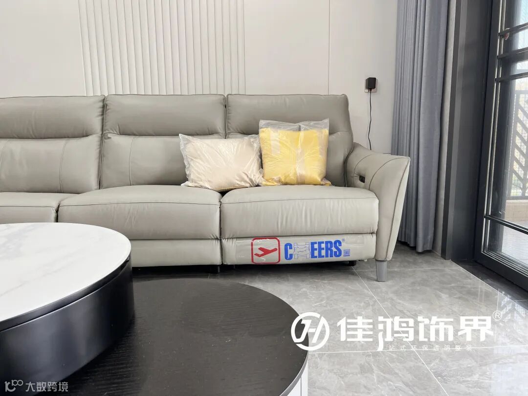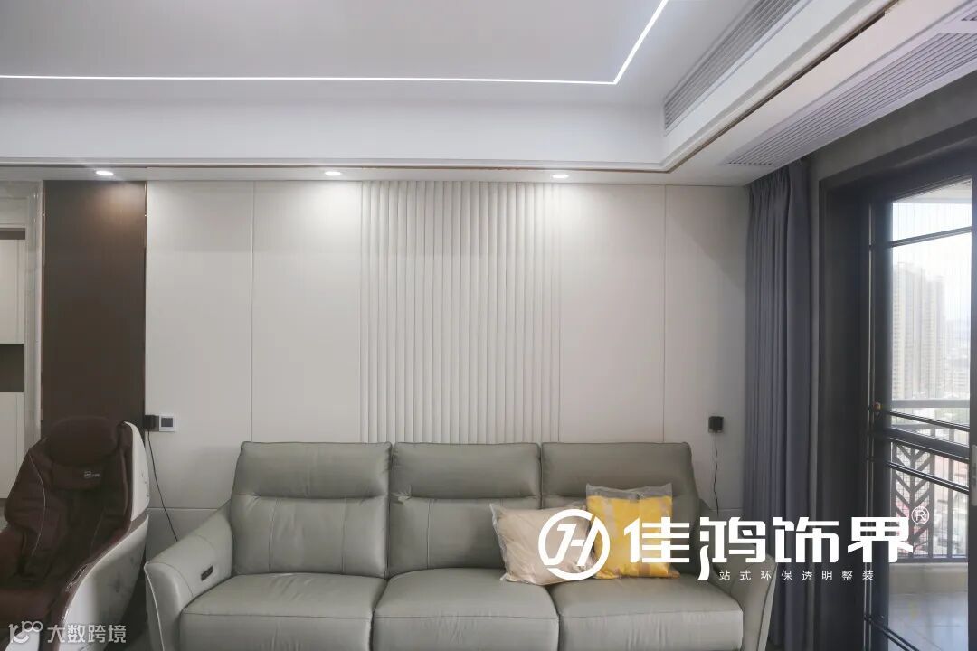 沙发背景硬饰面板的分色,做了线条处理,搭配太空舱系列真皮沙发,让空间更有层次和趣味性,家就该如此柔软。
