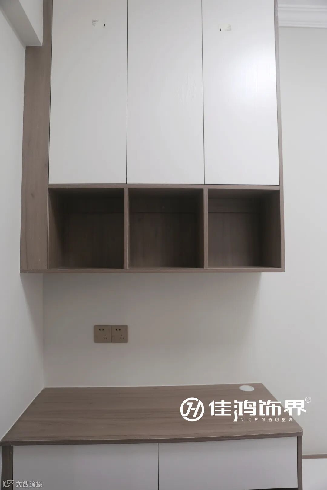 吊柜补充一组开放收纳格,作为书架展示区,或者放置精致的摆件。