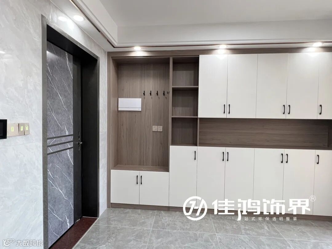 入户玄关处做了筒灯照明,通顶柜做满了整面墙,最大化利用空间做收纳。