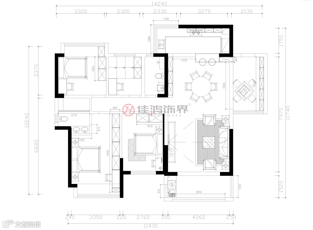 2. 将过道空间打通,公共活动区域与卧室之间的联系更紧密;