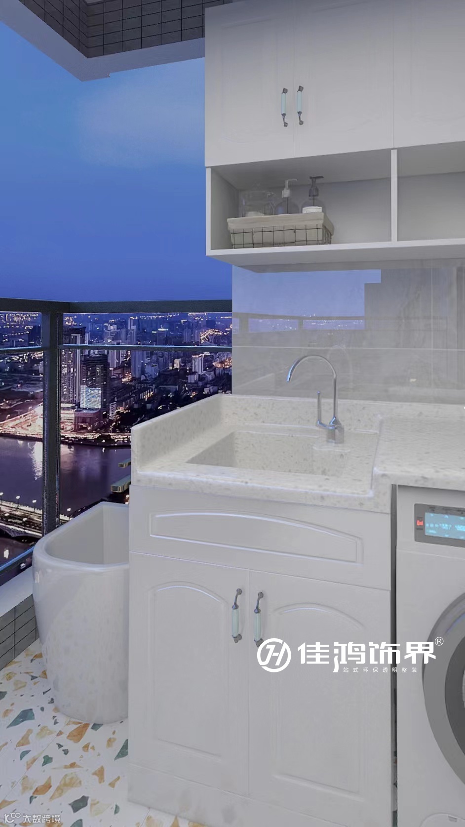 汇集石英石、陶瓷、哑光面板等材质的洗衣区,合理有秩序的安排尽显优雅之姿,生活也开始变得不慌不忙。