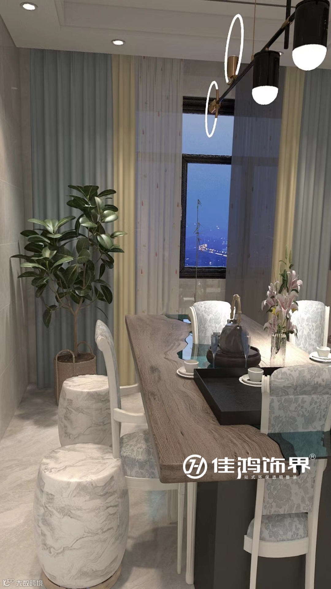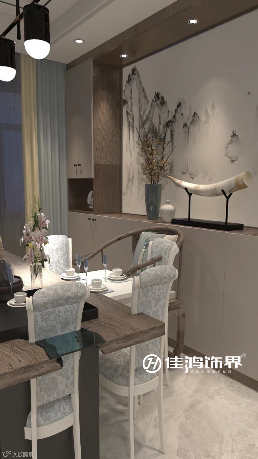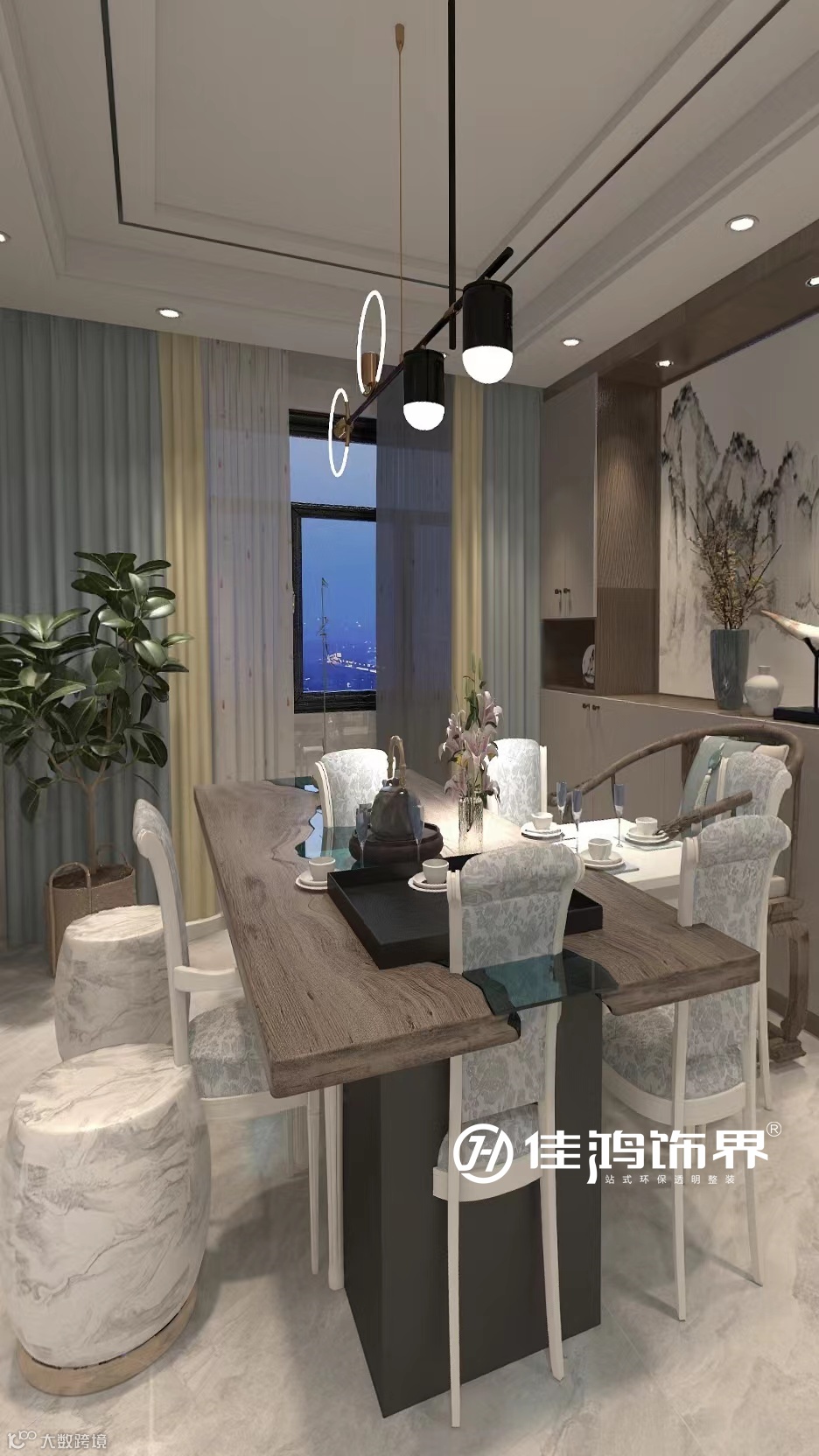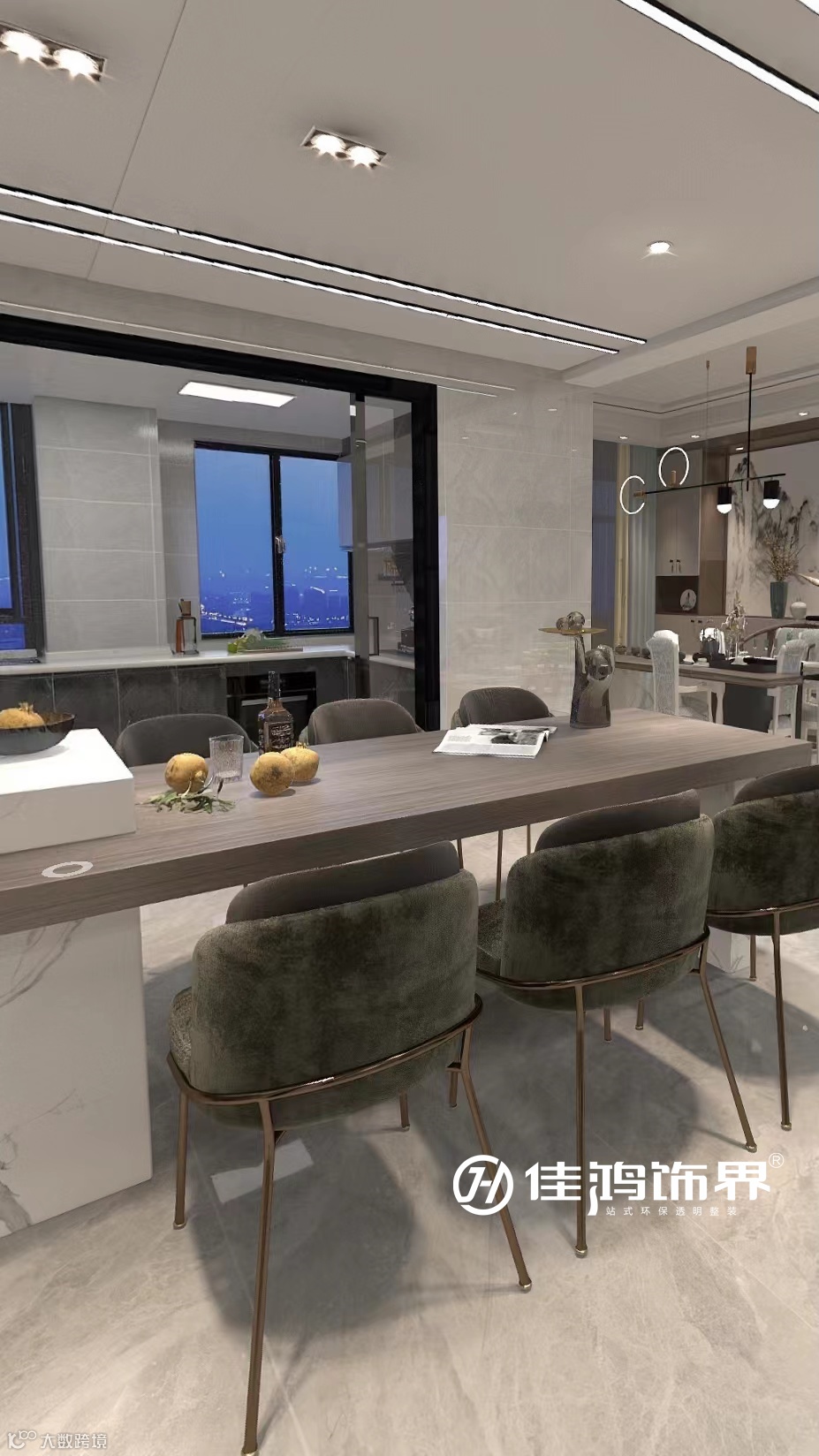 餐厅空间以无主灯的设计,营造出大平层的既视感。