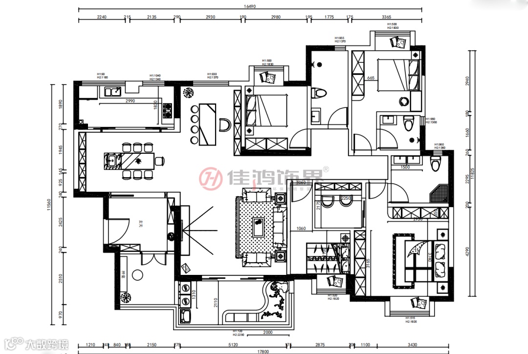 户型:4房2厅1茶室