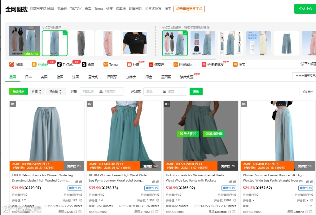 若是对选品已经有了想法,特别是做跨境电商的新手,对国外市场不够了解时,可以用图搜功能快速验证市场上是否存在类似商品、表现如何,避免盲目投入。