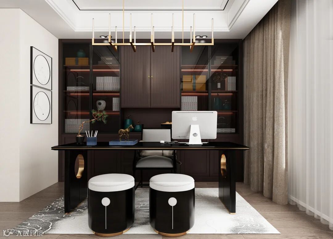新中式的设计则将对称对称之美融入书椅设计,就像一幅对仗工整的诗,均衡又和谐。