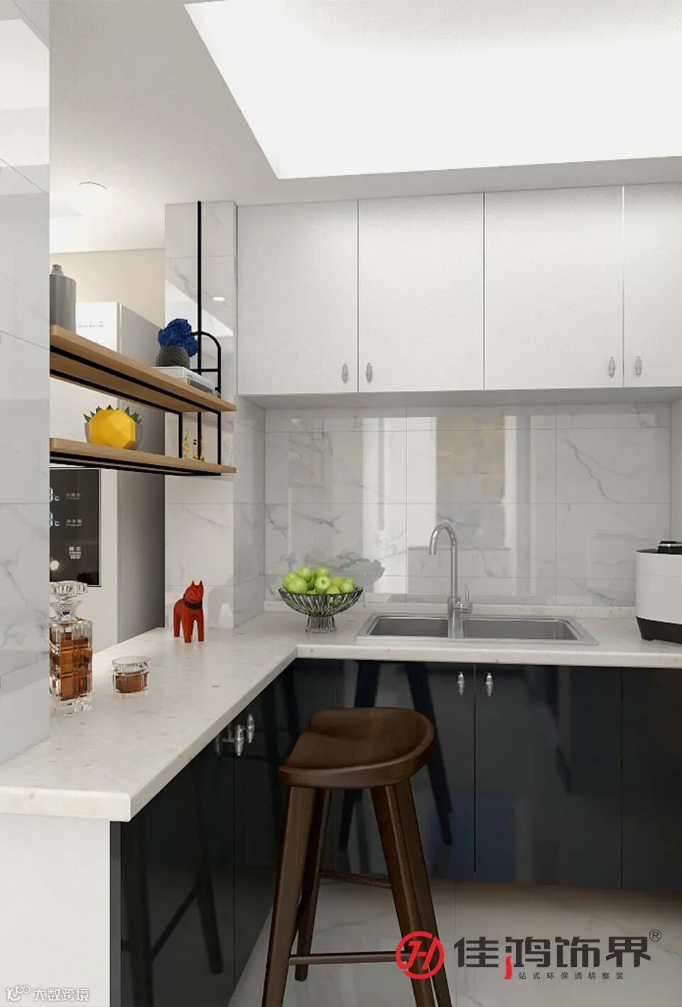 ▲哑光的台面,空间更显整洁,同时布置上白下黑的橱柜,厨房储物空间富足。