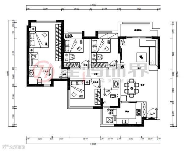 1、把小阳光房改造成卧室,使全屋具备四房空间