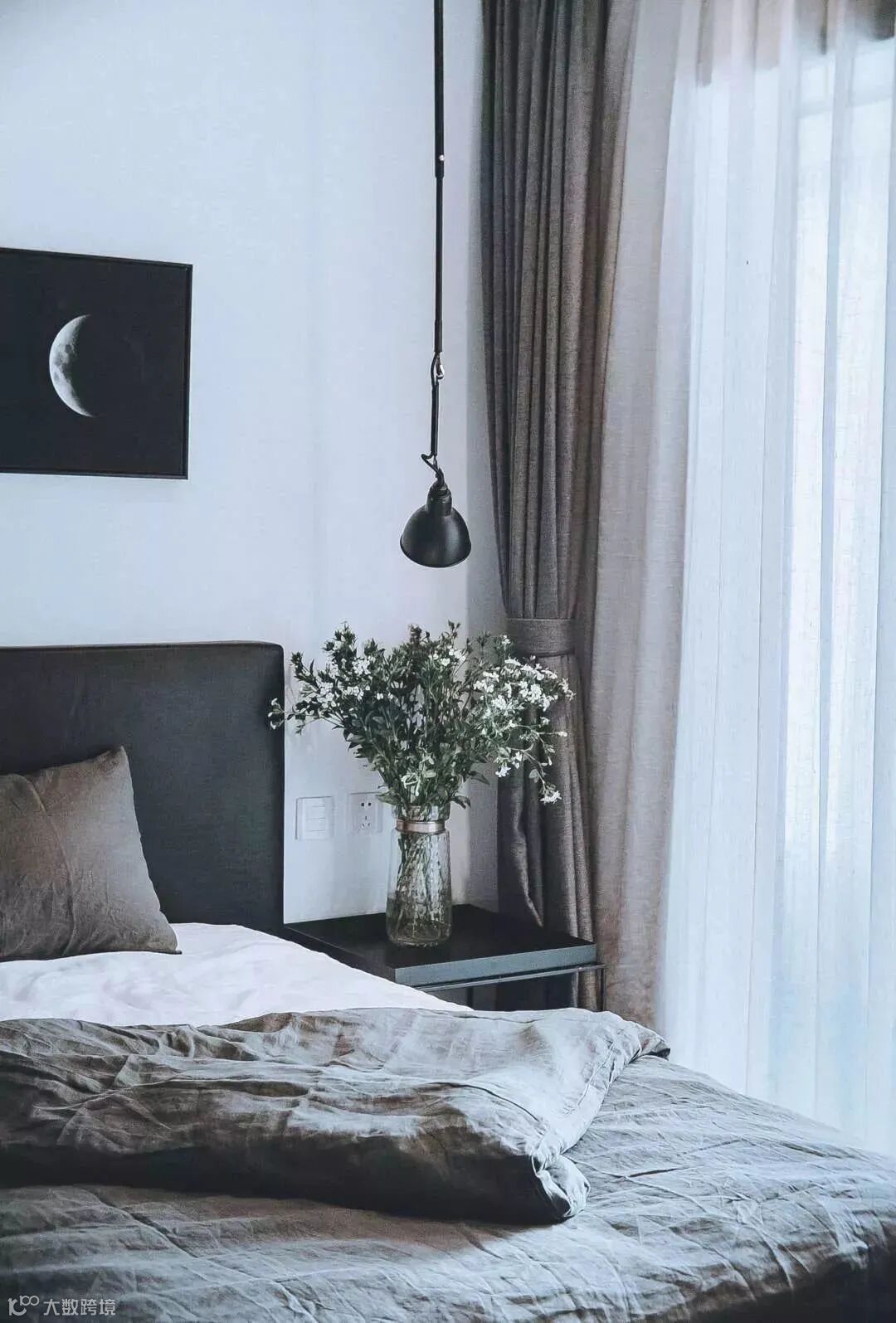窗帘可以选择淡色系的,巧妙地弱化其存在感;装饰画也不必太过亮眼,让设计最大化地凸显生活本身。