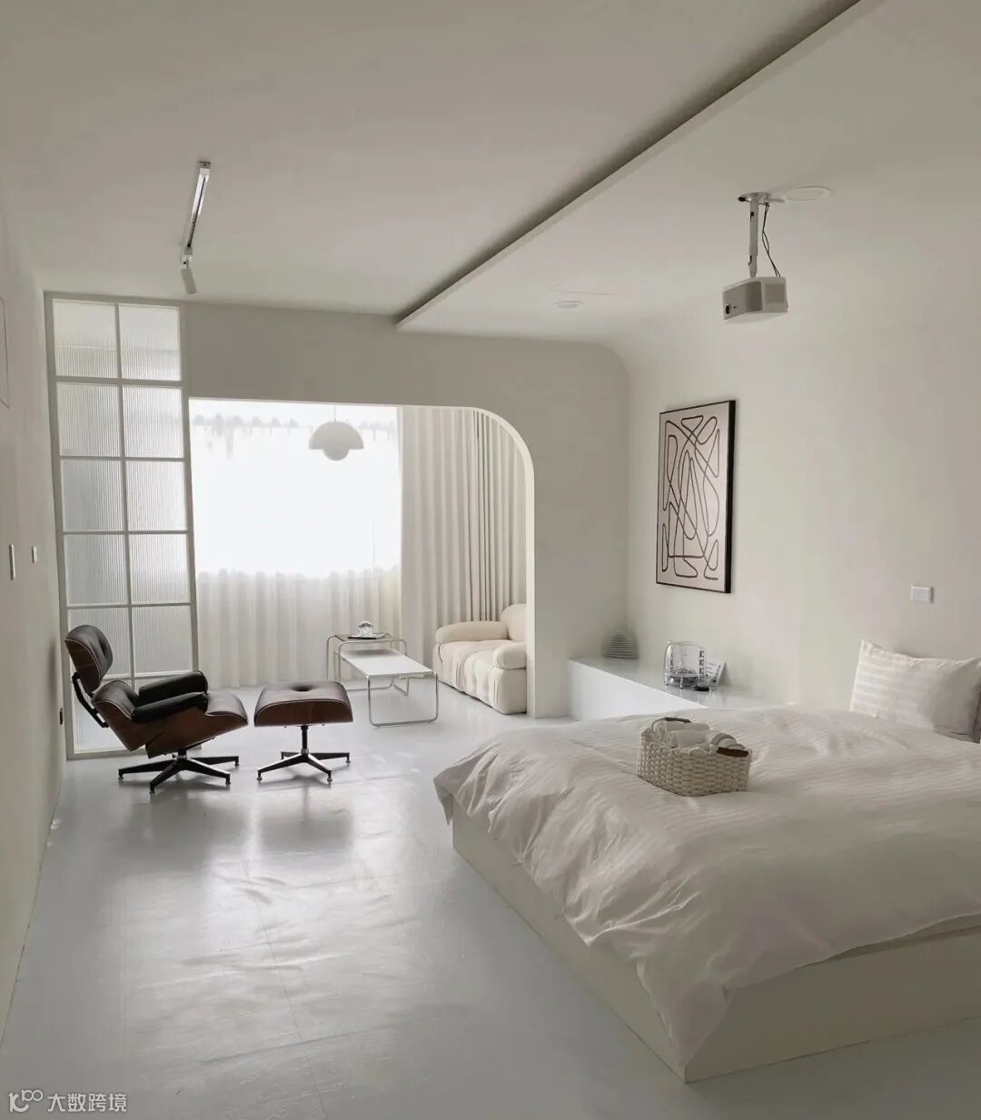 大白墙+浅色地板,是非常典型的盐系元素,也将确定整个空间的风格基调。