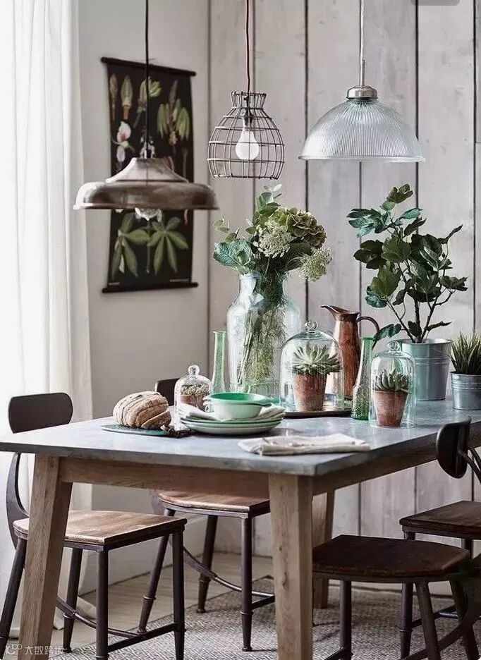 在装饰的选择上,让玻璃吊灯、金属饰物或带有线条感的铁艺,在同一空间进行组合与碰撞,也是一种不错的选择。