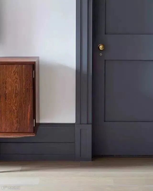 踢脚线在墙面部分会与房门的门框相互衔接,为了让踢脚线与门框之间更加和谐美观,踢脚线的颜色也是可以选择与房门接近的,实现一个比较和谐大方的设计效果。