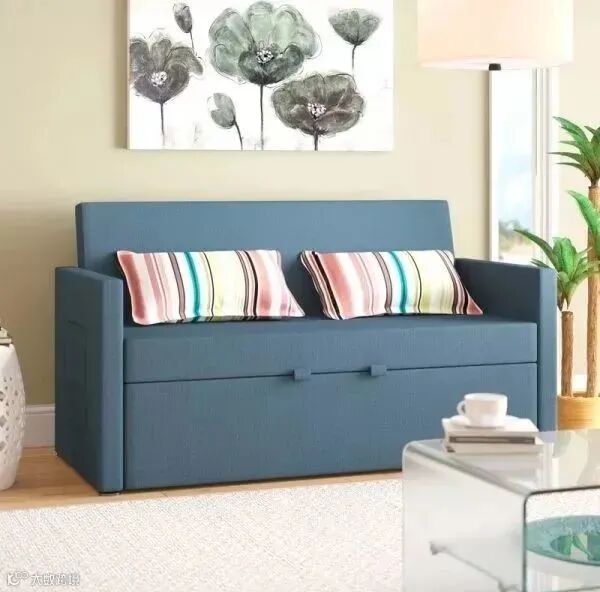 当然了如果想要更省空间的话,也可以装这种折叠沙发床,不过展开以及收起来的时候比较麻烦,而且两个功能不能同时使用。