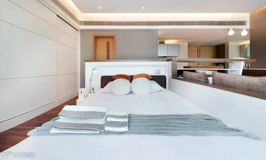 或者是室内局部的地面打造地台,然后直接将床垫塞在这下面。