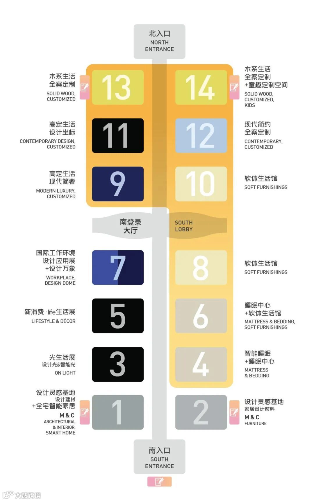 大定制展区——定制衣柜、定制橱柜、定制家居、实木定制、整木家装、全屋定制、智能家居、衣柜移门配件及材料、墙体装饰、墙纸、软包、窗帘、布艺、涂料、硅藻泥、机械等。