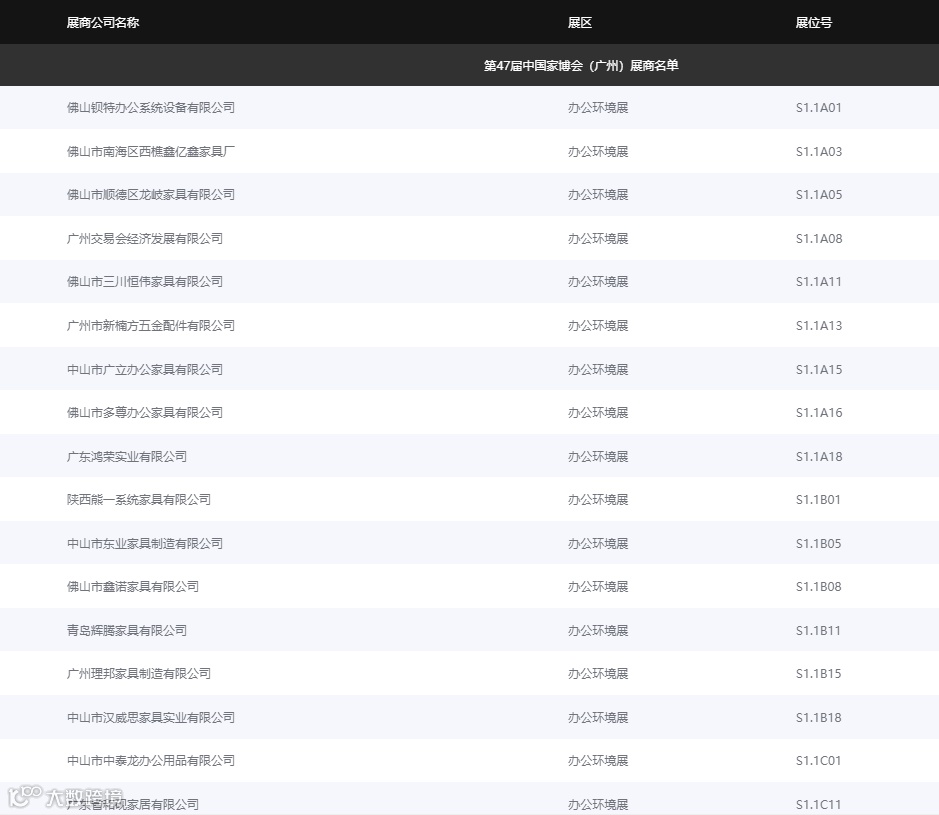 部分展商名单