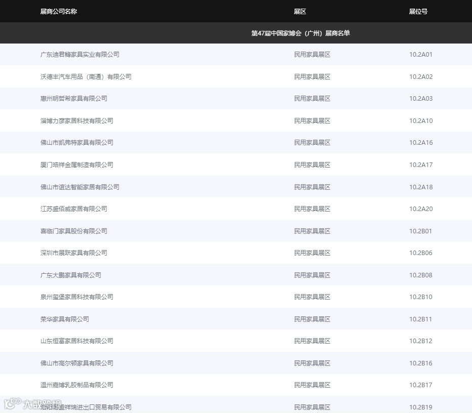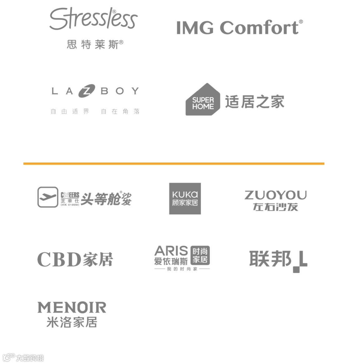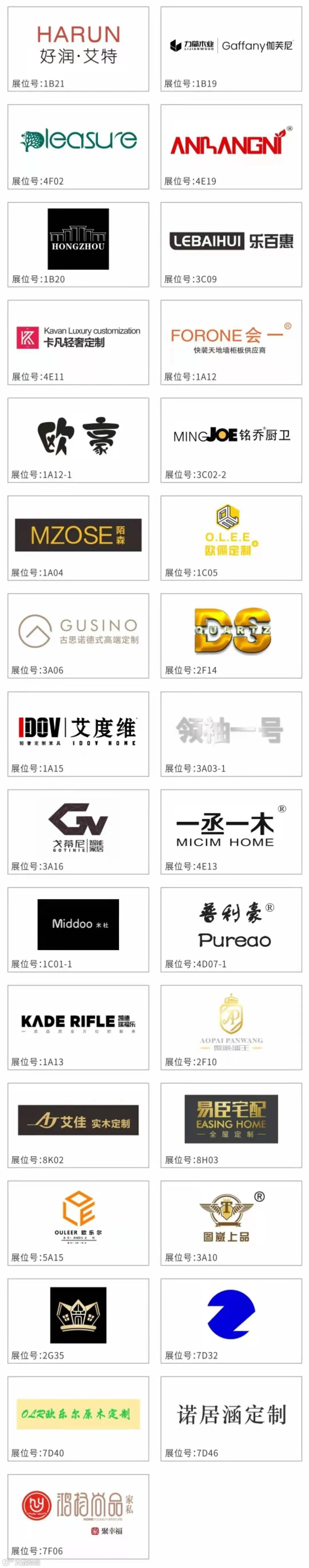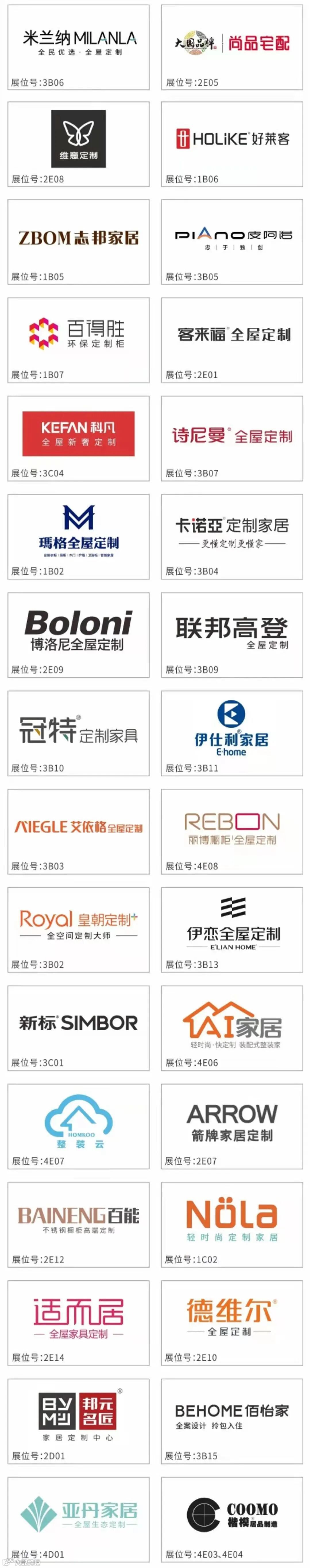华辉、楷模、慕思、CBD、顾家家居、斯可馨、融峰、南兴、富兰帝斯、万恒通、博领家居、森盛、福林、A家、宝居乐、时兴、和睿、华师傅、米洛家居、鲁艺、思丽德赛、红宝轩等