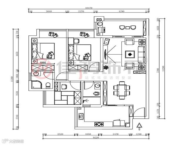 2.两个次卧都要求放置书桌,对厨房的空间要求较大。