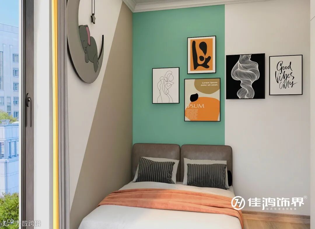 ✔️ 将小次卧和小阳台打通,合理利用小阳台的空间,扩大了小次卧面积,增加了宝宝的活动空间。