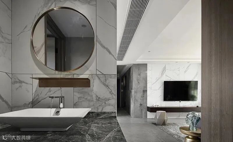 洗手台外移的设计,就是将洗漱台从卫生间移出去,马桶、淋浴一个区,洗漱台在另外一个区域,两个空间互不干扰,同时使用也不会发生任何冲突。