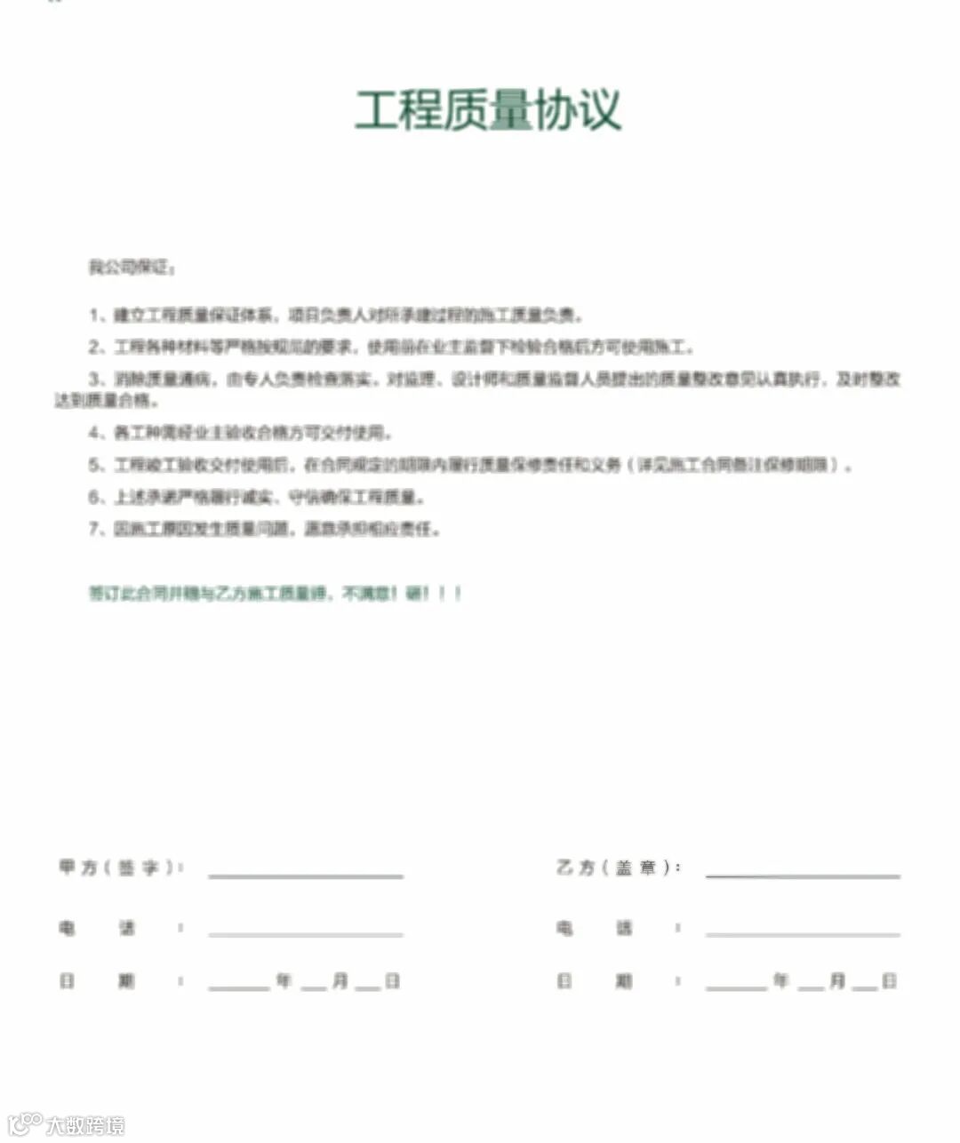 6、每一户额外配备《工程质量协议》、《售后延保协议》: