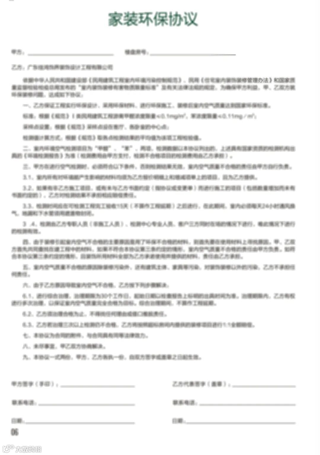 4、每一户额外配备《家装环保协议》: