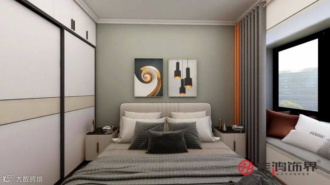 The elder room is mainly simple and comfortable. The cyan latex paint is elegant and eye-protecting. The push-pull curtain acts as a soft partition, which separates the space for rest and relaxation. When you gently pull it up at night, it will bring calm and quiet comfort. Sleep; fabric and suede bedding and pillows, soft and silky touch full marks.