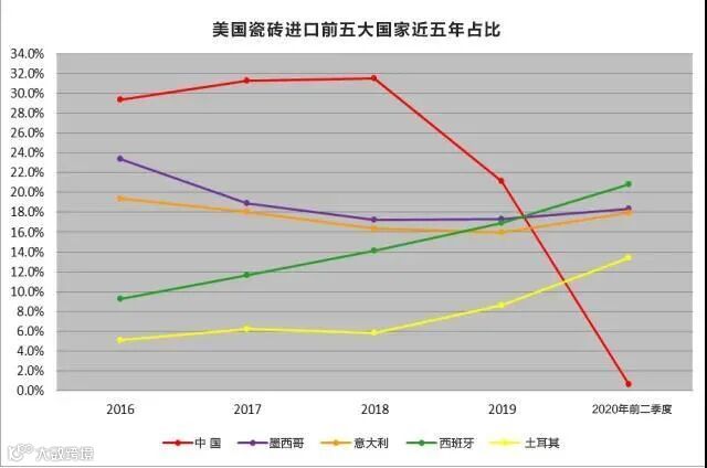 上半年中国在美国进口瓷砖中