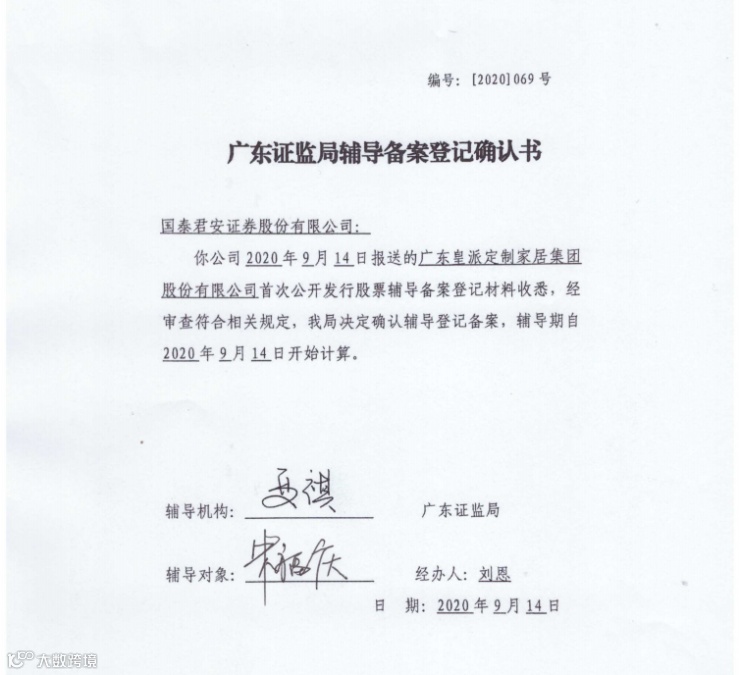 皇派定制家居IPO已辅导备案