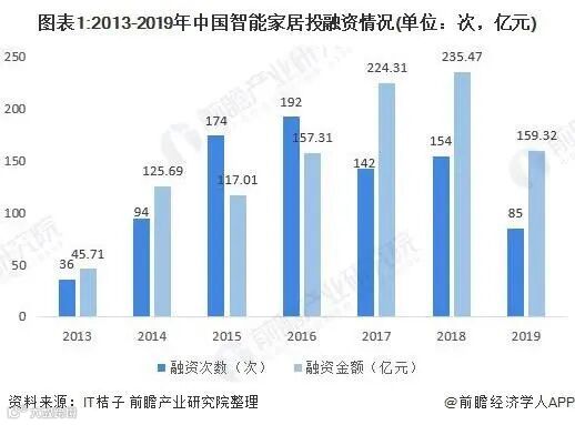 前瞻产业研究院数据显示,2017、2018年国内智能家居融资次数分别为142次、154次,2019年为85次,仅为前一年的一半不到,融资金额也有所下降。2020年,智能家居领域的融资表现虽不如之前活跃,但大额融资的频发从侧面印证了智能产业正受到越来越多的市场追捧。