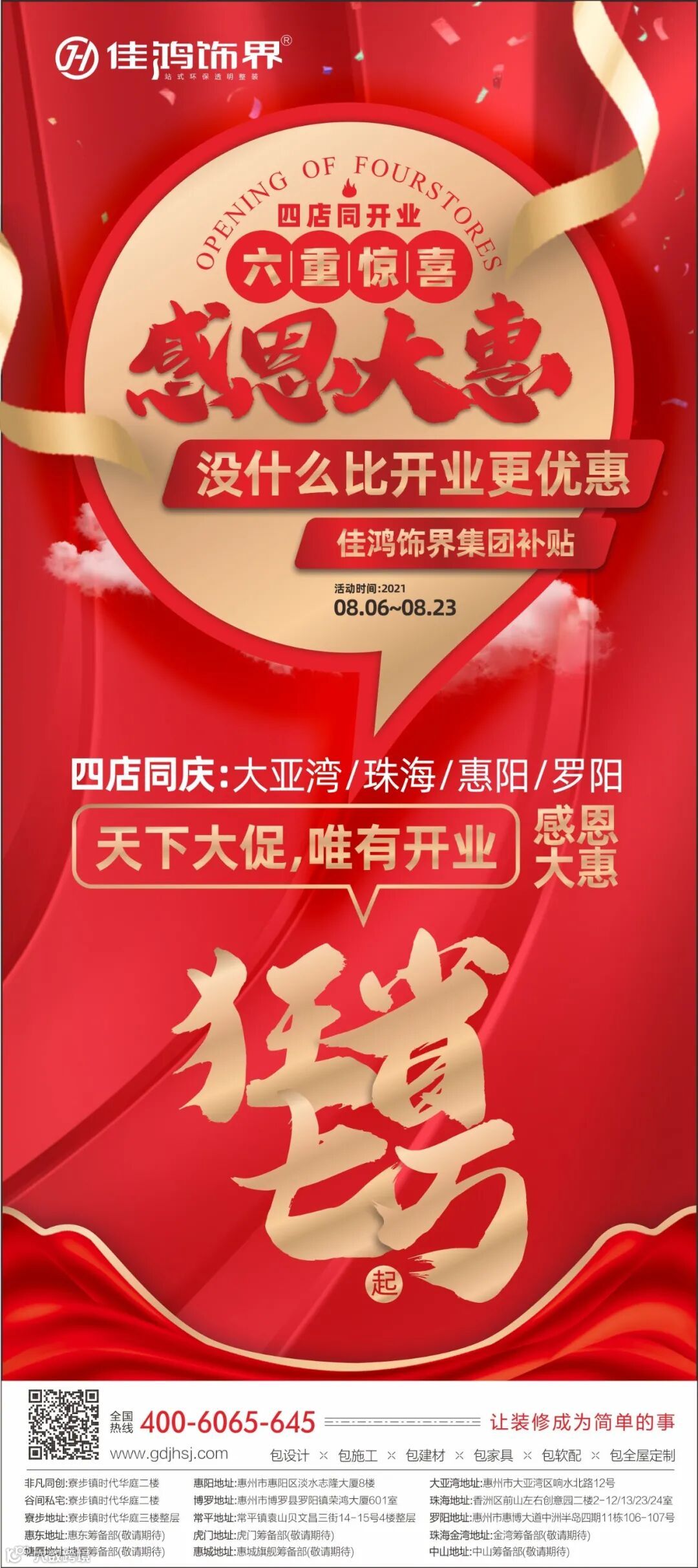 8月04日13时,佳鸿饰界集团展开了庆祝4店即将同时开业的全员启动大会。活动当天重磅推出了“四店同庆”的主题活动,除了惊喜的让利活动,还有多位优秀的佳鸿人上台进行了分享。