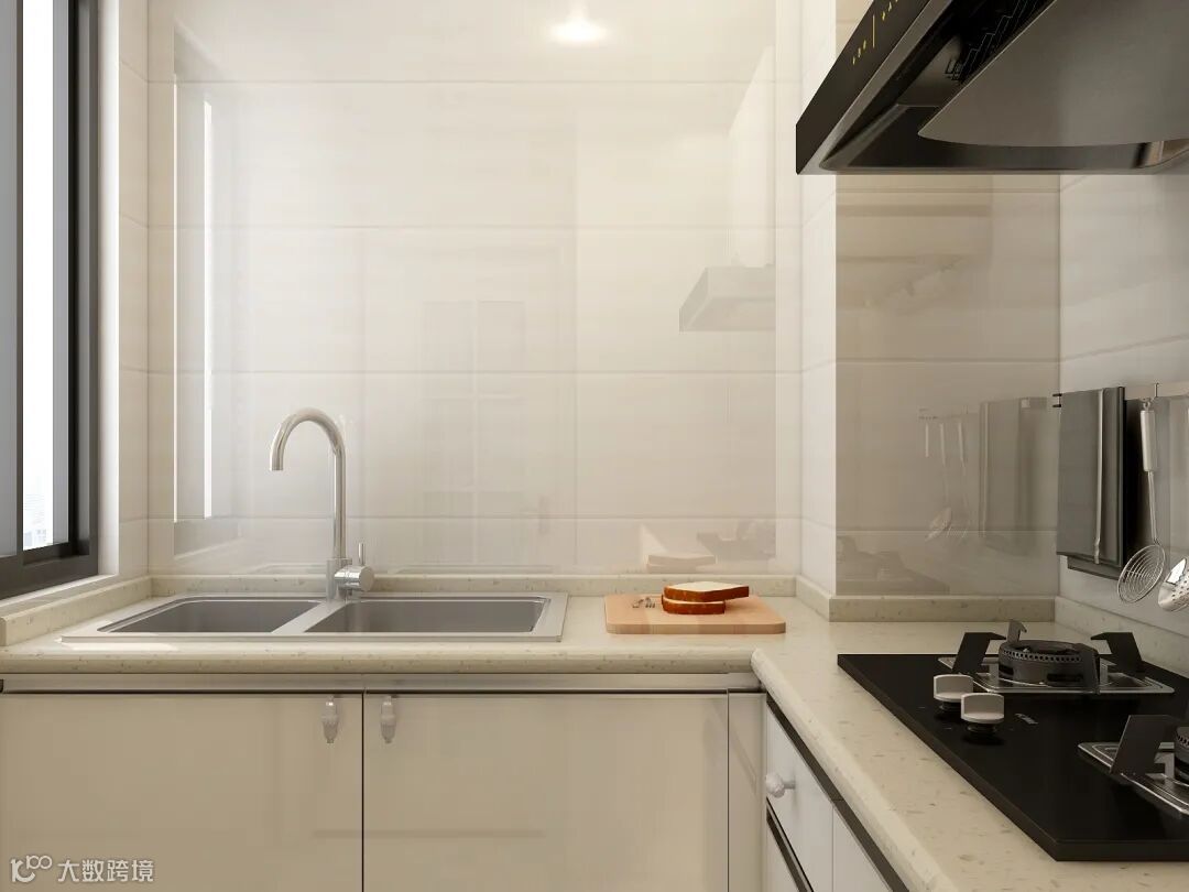 厨房|天使白色橱柜和墙砖带来最简洁干净的做餐环境,现代化厨具使用也快捷方便。