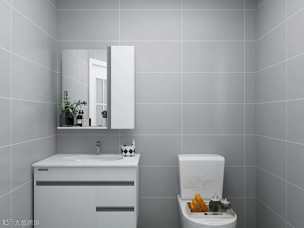 卫生间|运用灰色格子的墙面砖,简约文艺的元素,让卫生间显得更加宽敞自然,搭配上白色灰边的洗手盆柜,墨绿香氛,空间彰显出一个高级大方而简约时尚氛围。