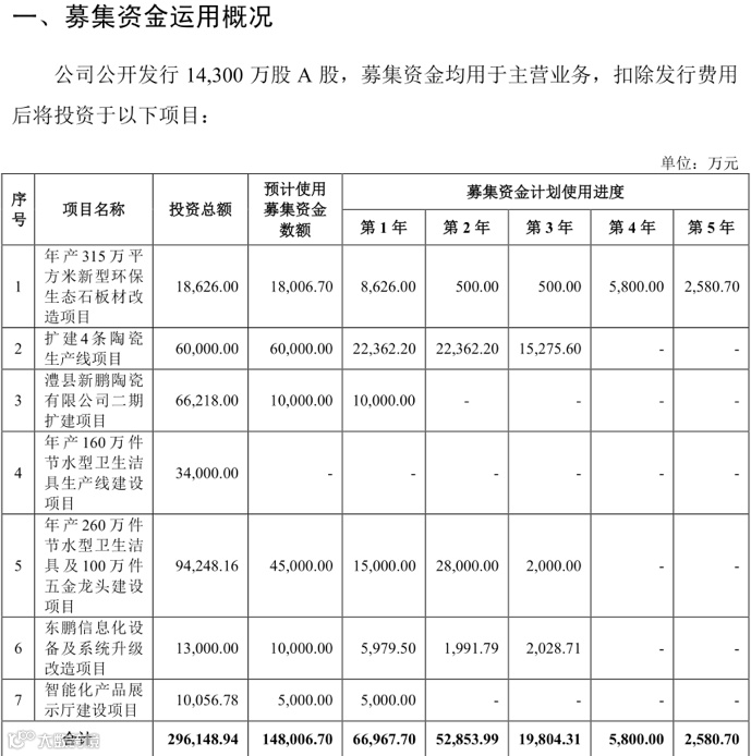9月28日,东鹏控股发布A股招股书,募集资金用于扩建8条新生产线、发力环保石材和升级企业信息化建设,总投资12.6218亿元。