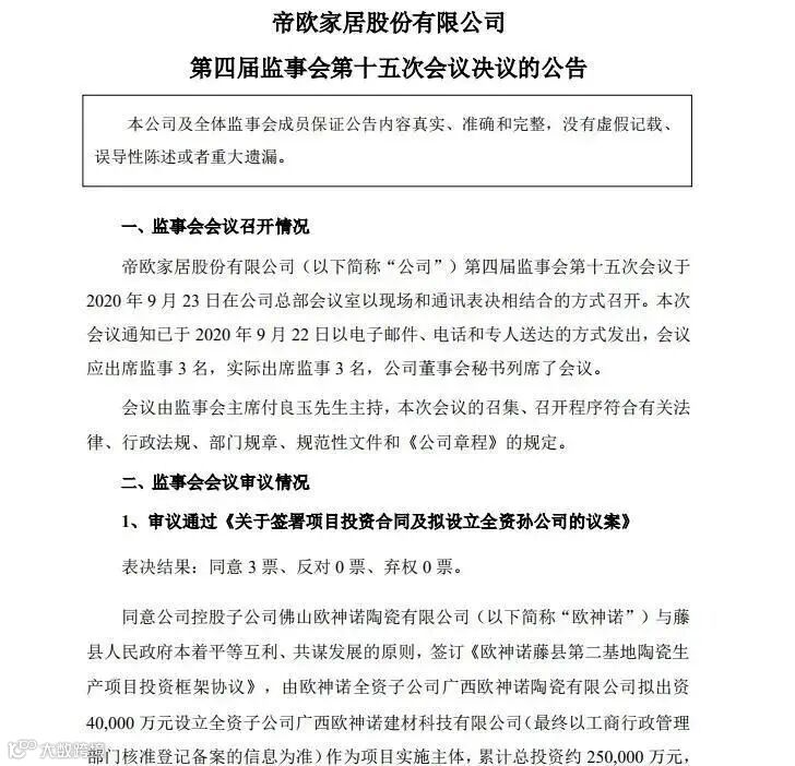 除了东鹏,帝欧家居也发公告称,将斥资25亿元对旗下欧神诺品牌进行生产扩容。据了解,欧神诺选址广西藤县,计划建设藤县第二基底陶瓷生产项目。主要涵盖陶瓷、卫浴、泛家居三大板块,建设10条现代化陶瓷生产线及泛家居产品的生产,预计建设期限为3~5年。