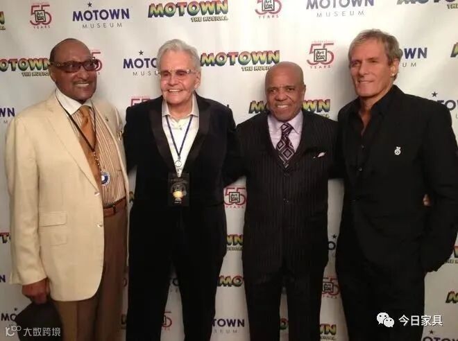 ▲2014年10月21日,范·埃尔斯兰德迈克·波顿(右一),FourTops成员DukeFakir(左一)以及BerryGordy Jr.合影
