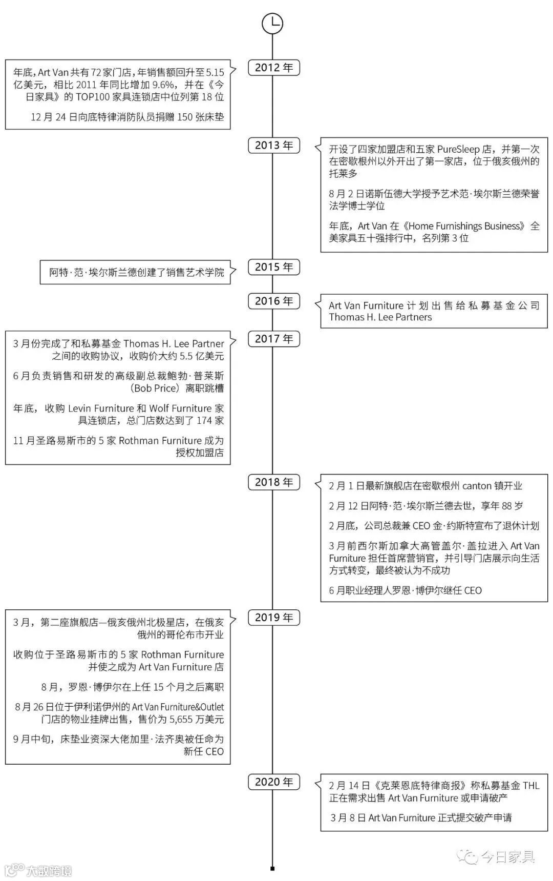 从2016年下半年开始,经过一系列复杂的接洽和谈判,最终范·埃尔斯兰德将自己创立的ArtVan Furniture以大约5.5亿美元的价格出售给了私募基金公司ThomasH. Lee Partners(简称THL),收购协议在2017年3月完成。