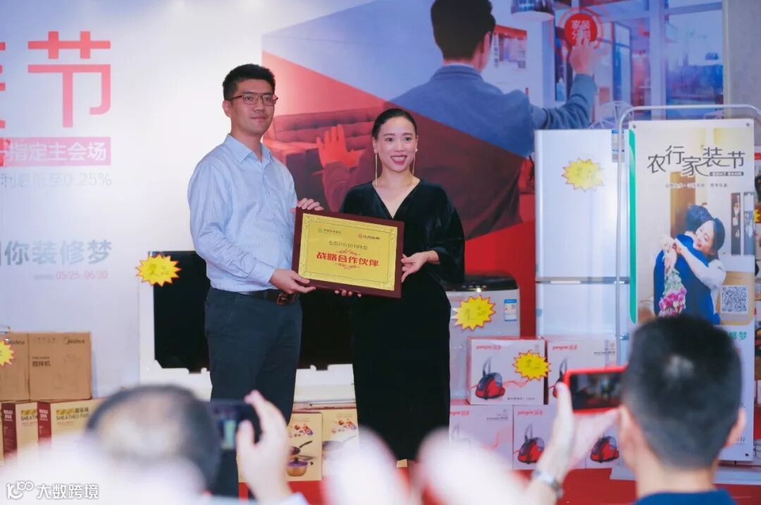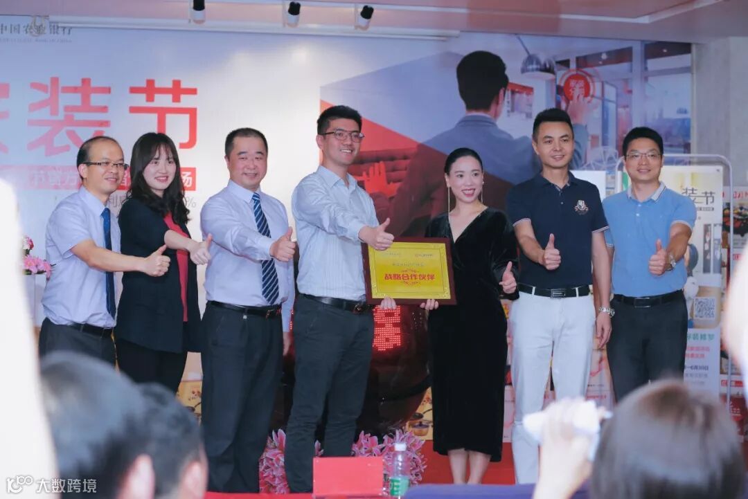 授牌仪式中,中国农业银行总行信用卡中心消费信贷管理处经理张彬将“2019年度战略合作”牌匾授予佳鸿装饰总经理肖静。剪彩仪式正式开始,中国农业银行张彬经理、蔡文婷高级客户经理、东莞分行凌端松副行长、东莞分行信用卡中心钟俊雄总经理、东莞分行大朗支行行长谢耀宇,与佳鸿装饰董事长王瑞天、总裁肖静一起,启动了水晶球启动仪式。