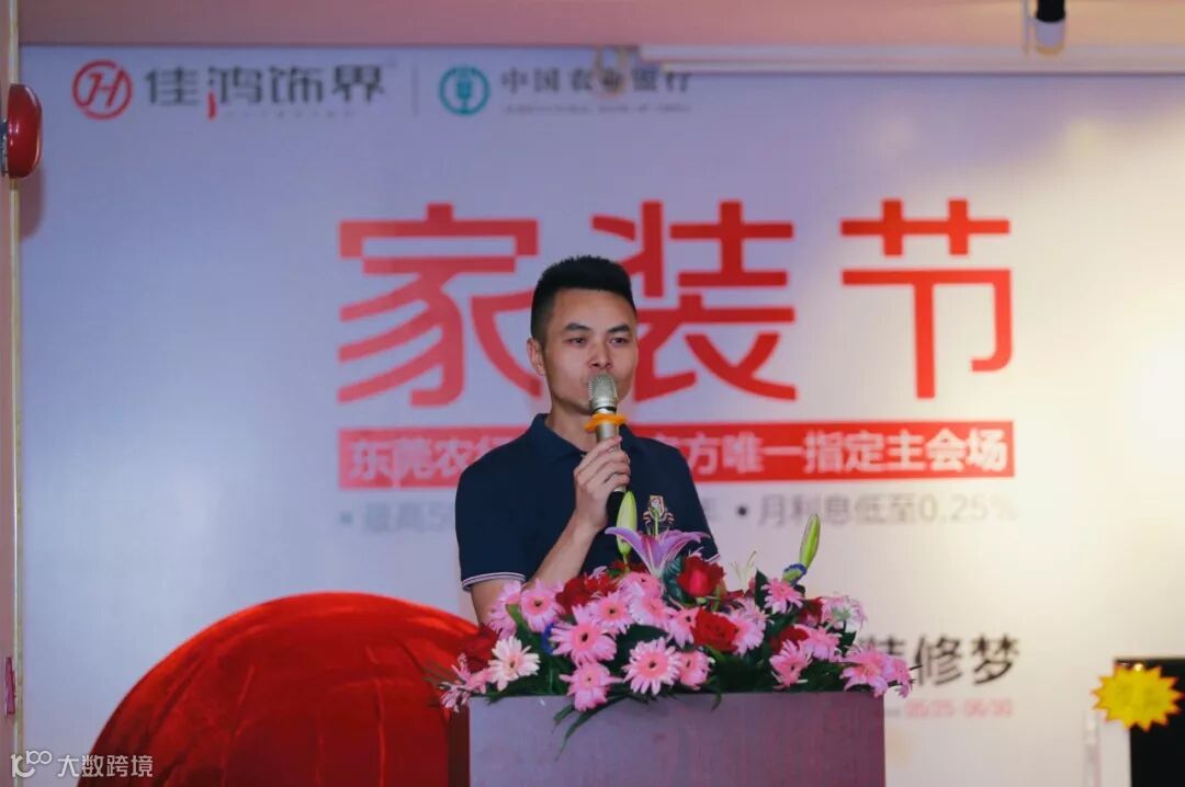 下午两点三十分,受邀参加家装节启幕仪式的嘉宾客户共计五百余人陆续到场。活动开场由佳鸿饰界董事长王瑞天致欢迎辞,他介绍,佳鸿饰界与东莞农行开拓性的携手,开创“农行家装节”经营新理念,着力解决家装痛点和难点,不仅提供装修一站式服务,更为民众百姓解决了家庭资产流动性需求,缓解大额装修带来的资金压力;履行大企业社会责任,在服务居民美好生活需要、促进消费升级等方面发挥了应有的作用。