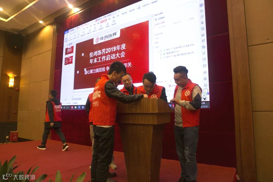 2019年12月2日,佳鸿饰界“凝心聚力搞双抢,争分夺秒冲年关”年底工作启动大会顺利召开,出席本次活动的有集团董事长王瑞天、集团总裁肖静、各分店店总经理及佳鸿饰界全体家人。