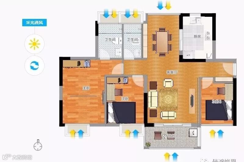 从设计角度解决室内空气流畅问题,把自然引进室内,形成自然通风系统的循环转换,从而达到理想的通风设计效果,让环境得到改善。