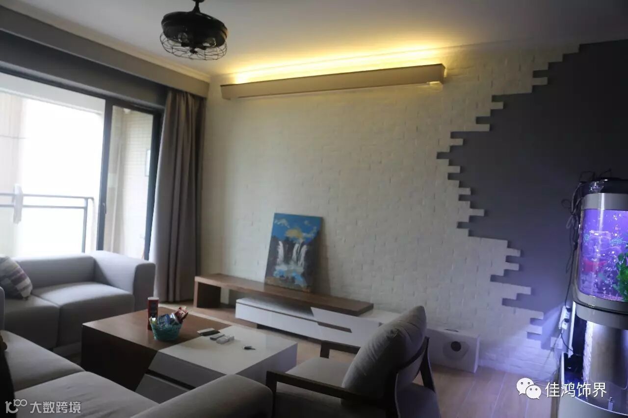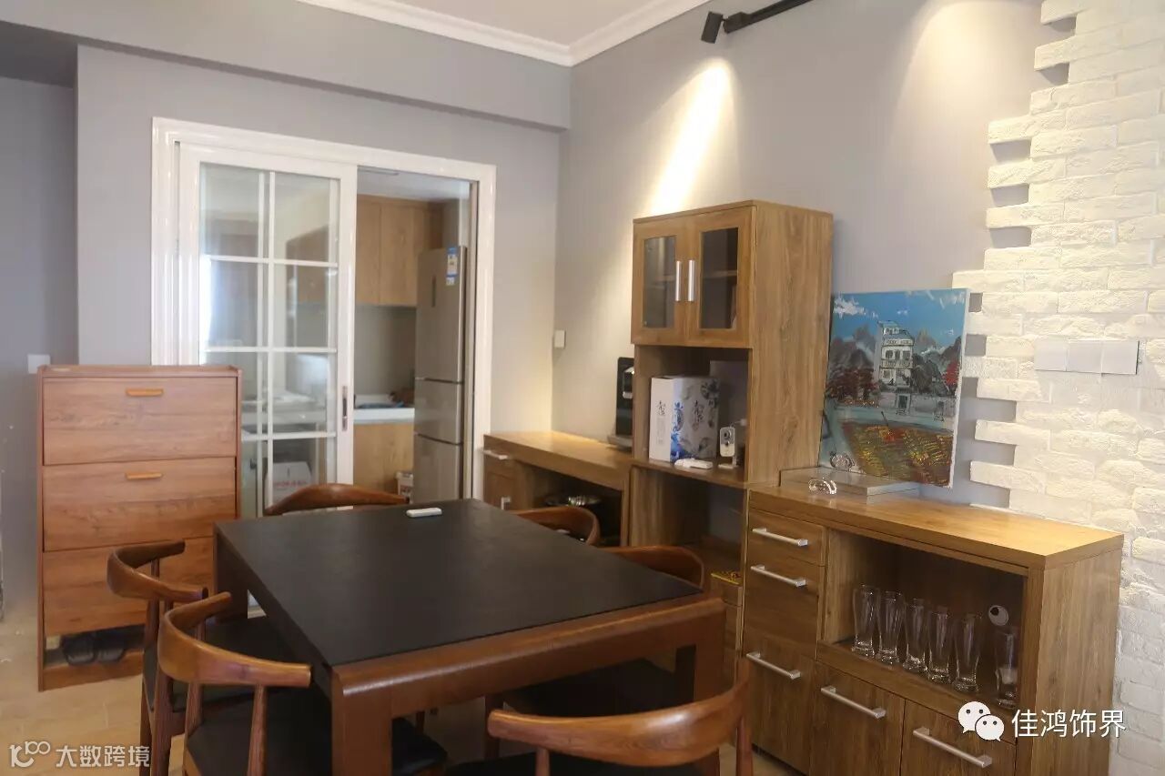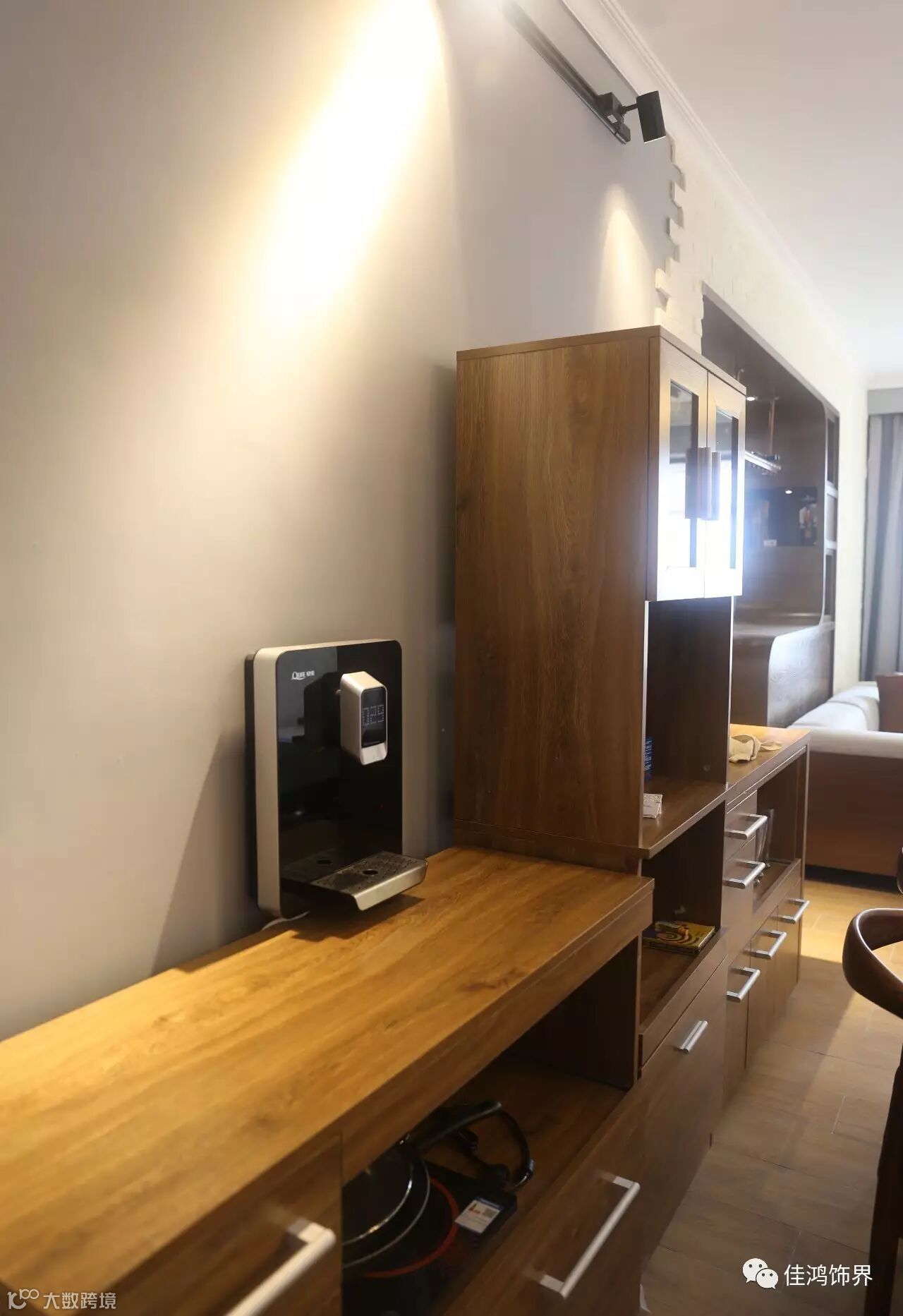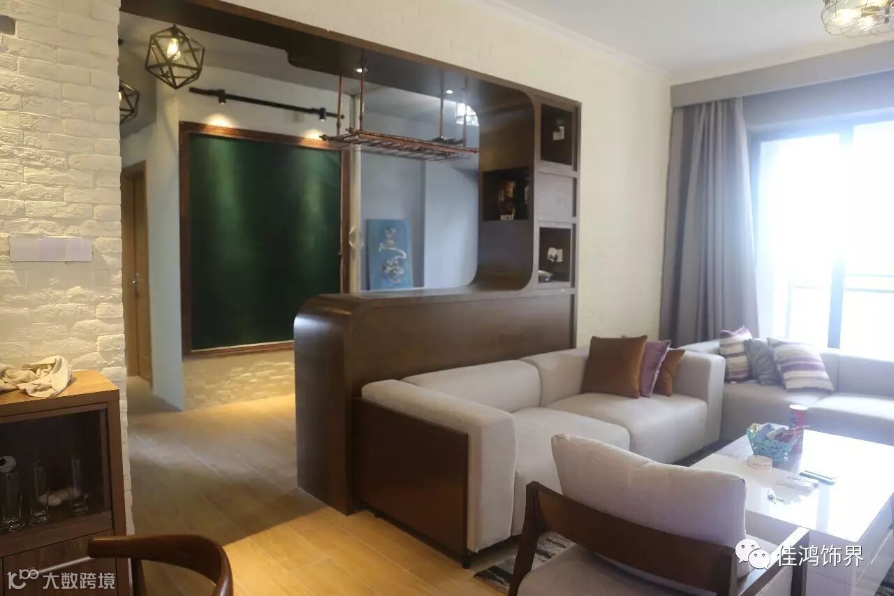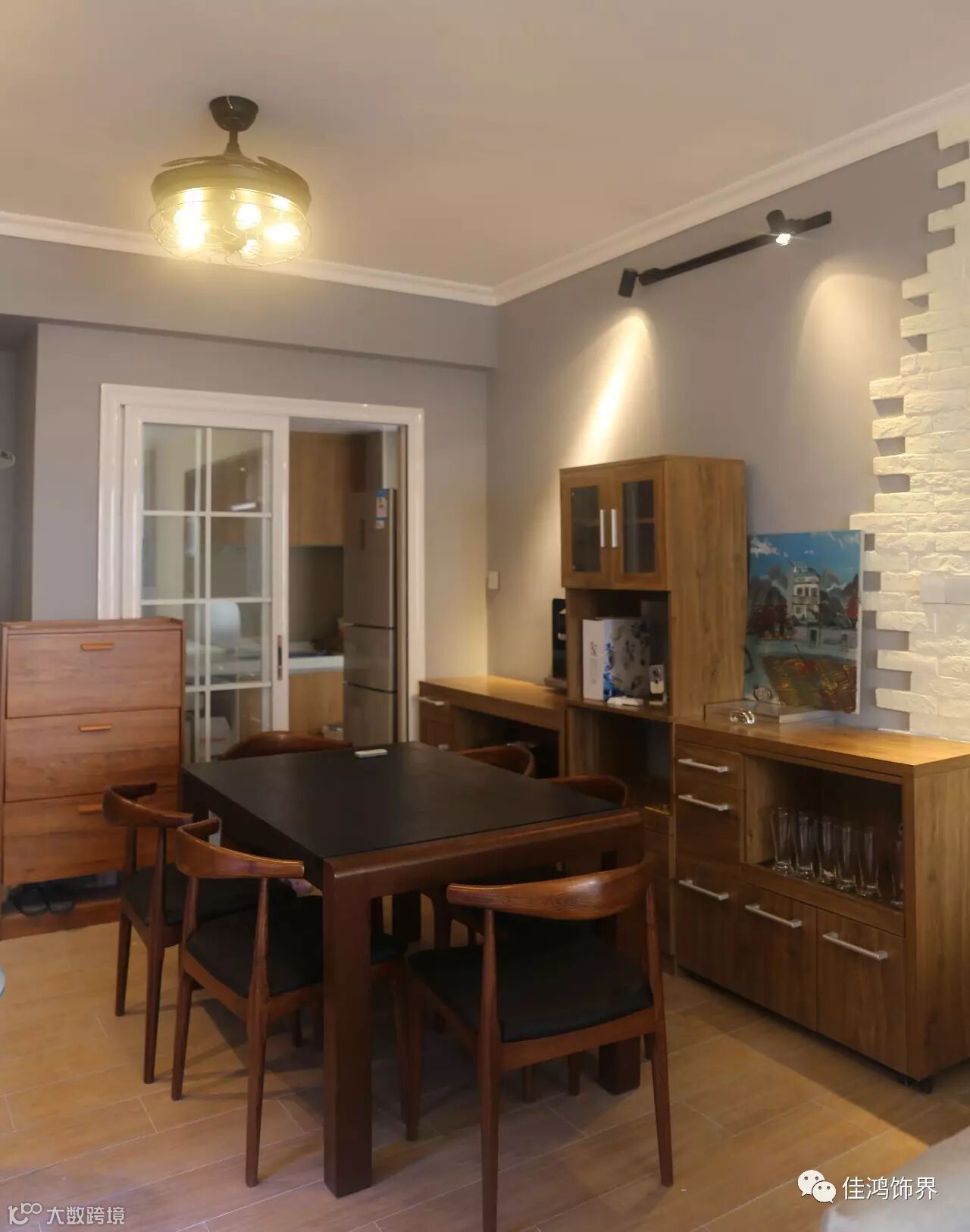 ▲客餐厅一体,紧凑但不失整体感,复古砖简美气息十足。再者,业主对于酒非常钟爱,所以客厅沙发背面那房间改成了开放式的书房,把墙体拆除做成吧台的形式,业主工作回来坐在这里小酌一杯也是别有一番趣味。