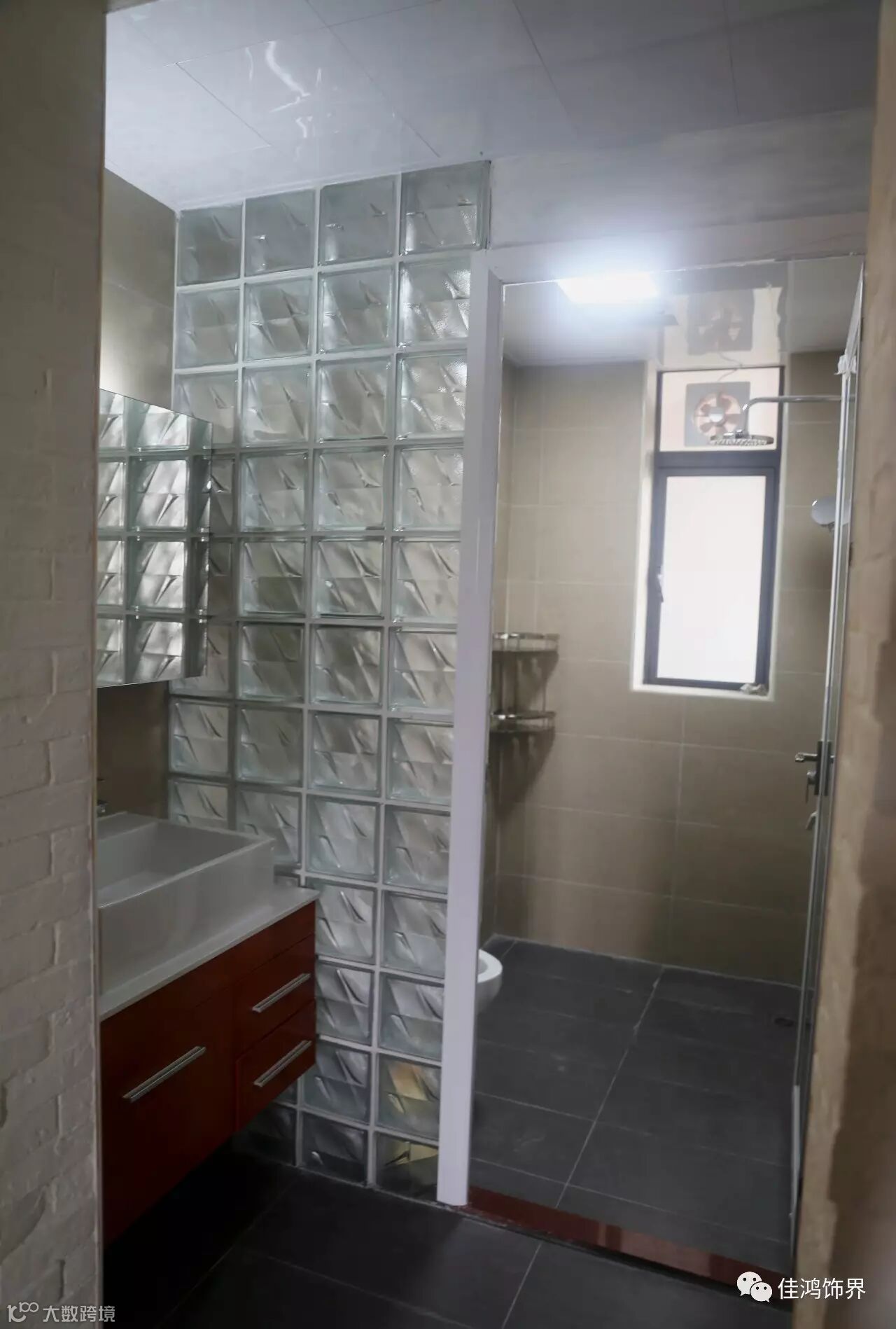 ▲卫生间使用蓝灰色瓷砖,干净清爽,玻璃移门使得空间更加通透宽敞,座便器旁抠出来的墙体置物架拿取更方便。