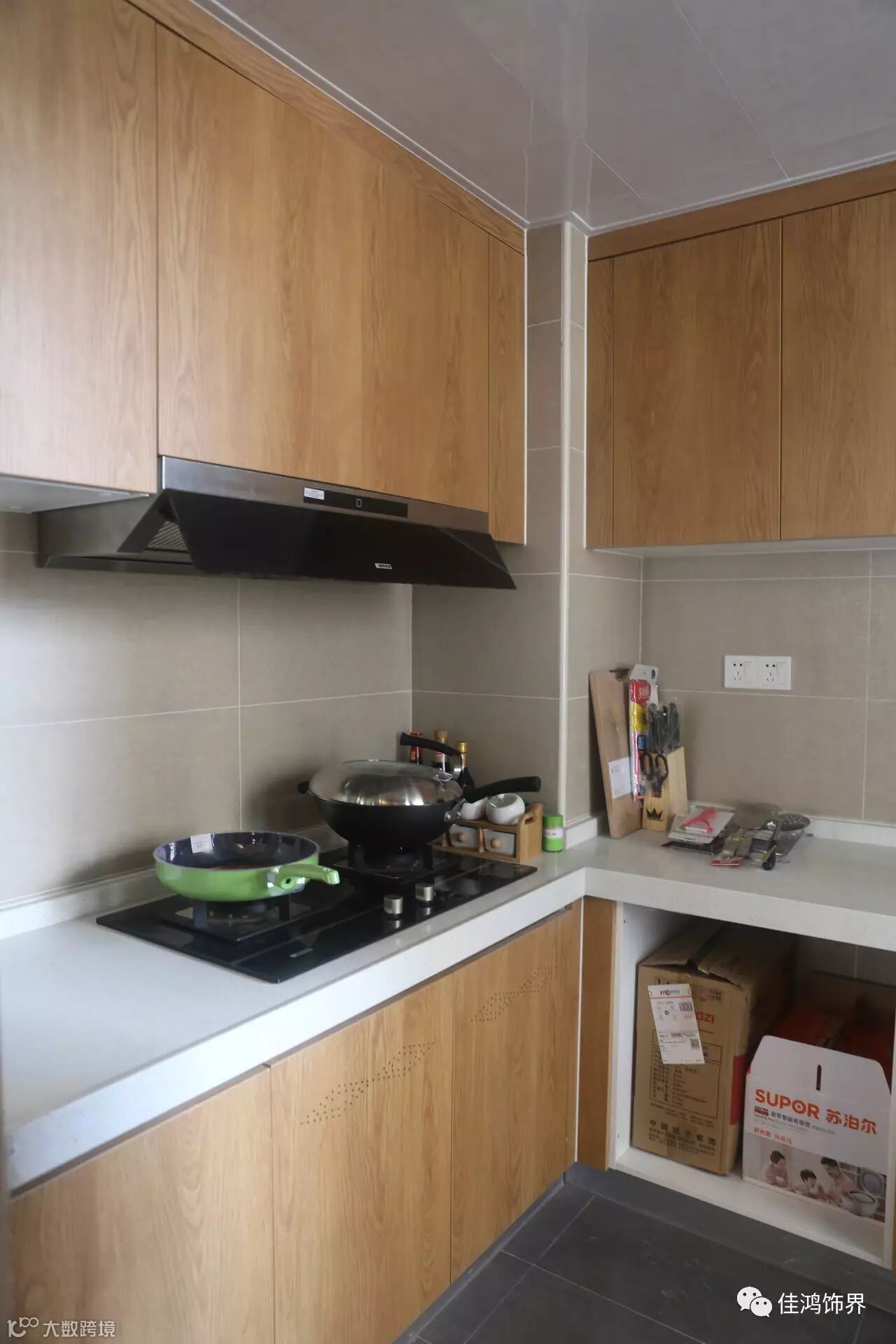 ▲厨房整体采用的是暖色调,有着别致感受。L型的橱柜设计充分利用空间,尽可能提高空间利用率。